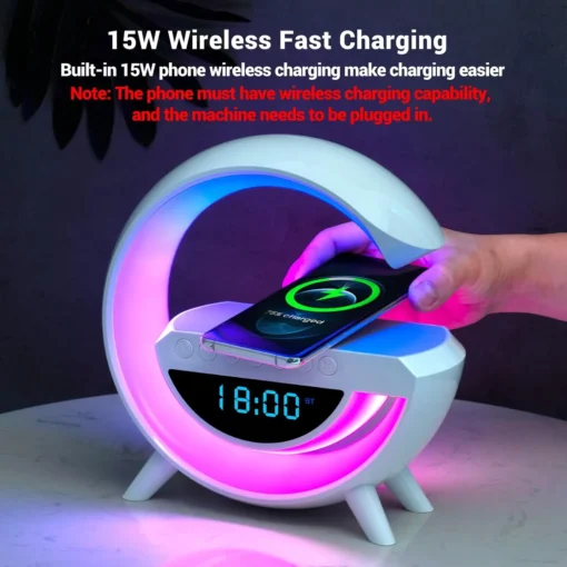 اشحن تليفونك بسهولة وبسرعة مع الشاحن اللاسلكي المدمج، وكمان هتستمتع بنوم هادئ من غير قلق من البطارية. + ألوان الي فيه هتخلي شكل الأوضة حلو + أنك تقدر تشغل عليه كل اللي انت عاوزوا كمان مستني أيه اطلبه حالاً 😍